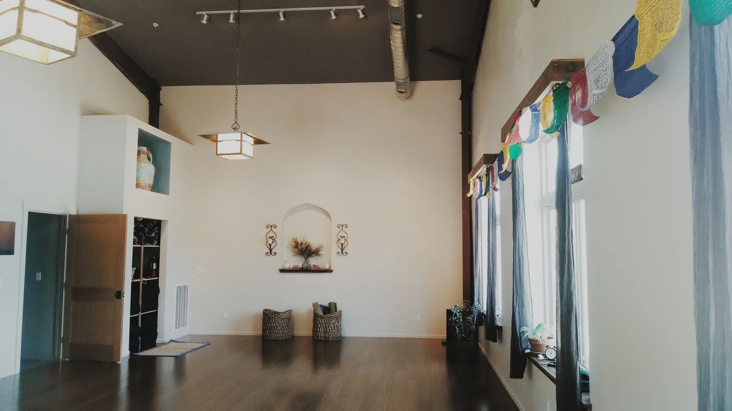 A cozy loft with two twin beds sits above the yoga studio and offers and relaxed place to rest and retreat in the evening. (availability: 2 beds)