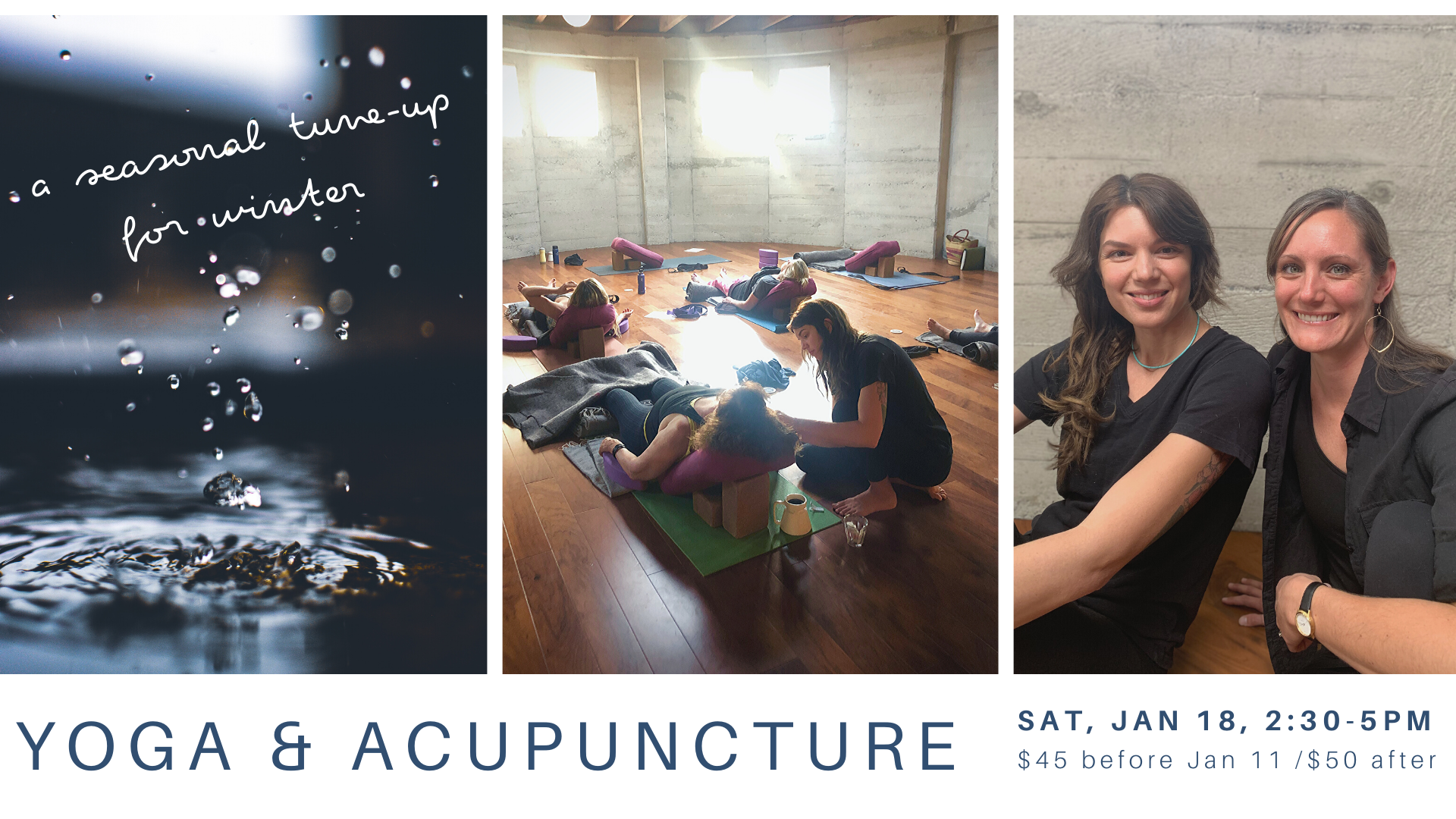 The yoga practice will begin with supported movements that emphasize sliding and gliding and will build to an asana sequence designed to activate the Chinese Meridians impacted during the season. The practice will culminate with an extended savasana and mini acupuncture treatment.