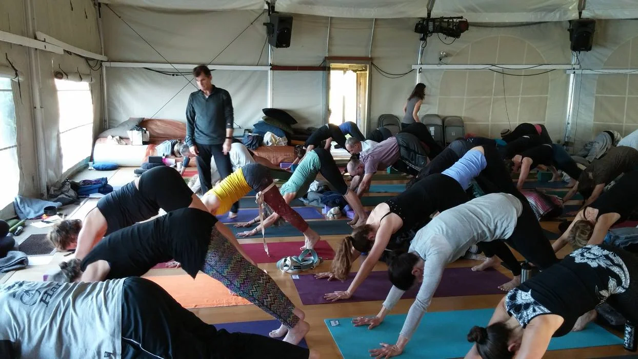 I was once again amazing at the skill of my teacher Tias. He was able to guide a room of 58 practitioners of all skill levels using clear language, tone of voice, sound effects, humor, poetry, and anatomy. The sequences built on each other, not only in the course of a single practice, but also over many days.